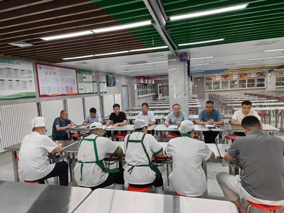 上午8!00,贾廷深校长正在食堂组织召开食物平安取养分健康工做现场办公会,针对近期食堂运转环境及学生关心问题进行研究安排,提出多项改良办法,并对下一步工做做出细致摆设。要持续巩固突击查抄,加速成立常态化、制、科学化的食物平安管理机制。