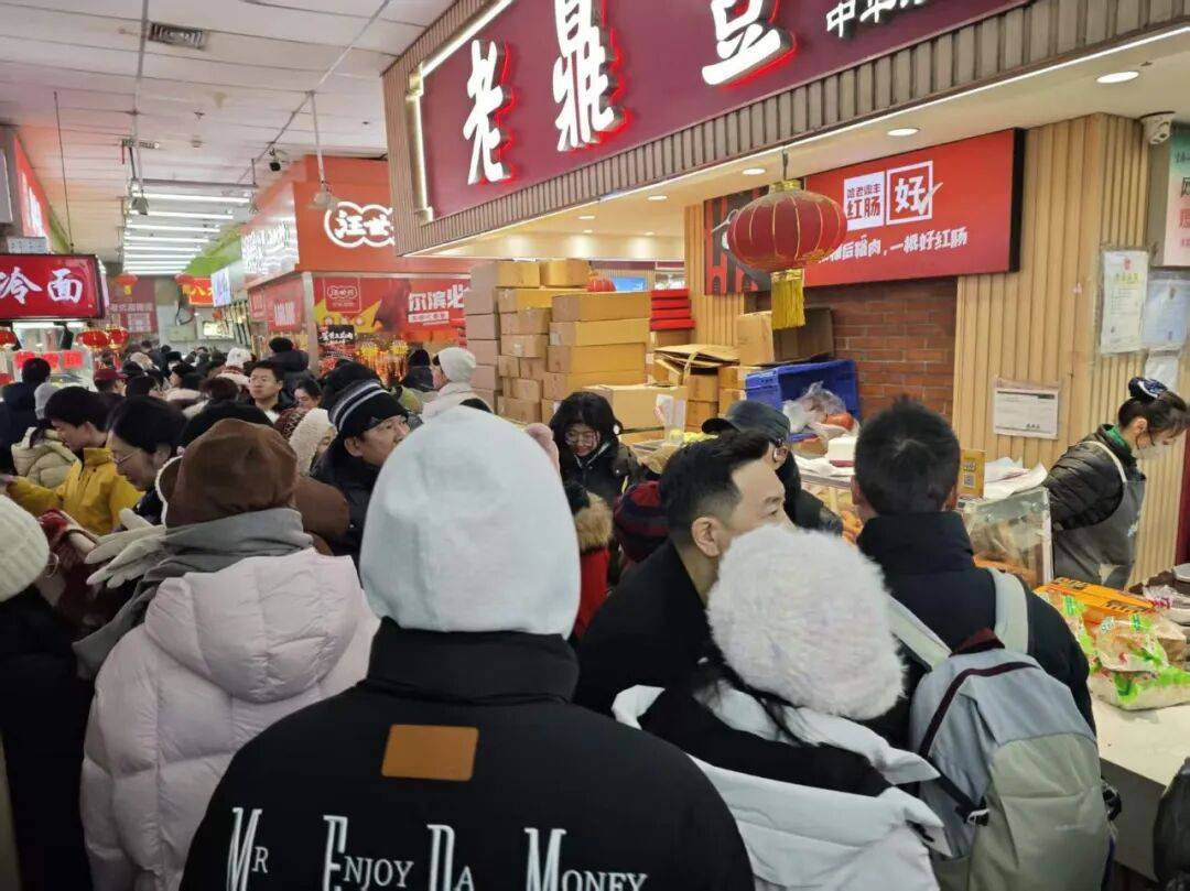 摩肩接踵的人群、此起彼伏的呼喊、大岁首年月二的道里菜市场,处处弥漫着热闹的新春空气。红肠、大列巴、冻梨等东北特色美食摆满货架,炸糕、南瓜饼、酸奶糕等网红小吃摊前更是排起长龙,刚出锅的美食滋滋做响,甜喷鼻、肉喷鼻、面喷鼻交错正在一路,成为冰城最新鲜的贩子味道。