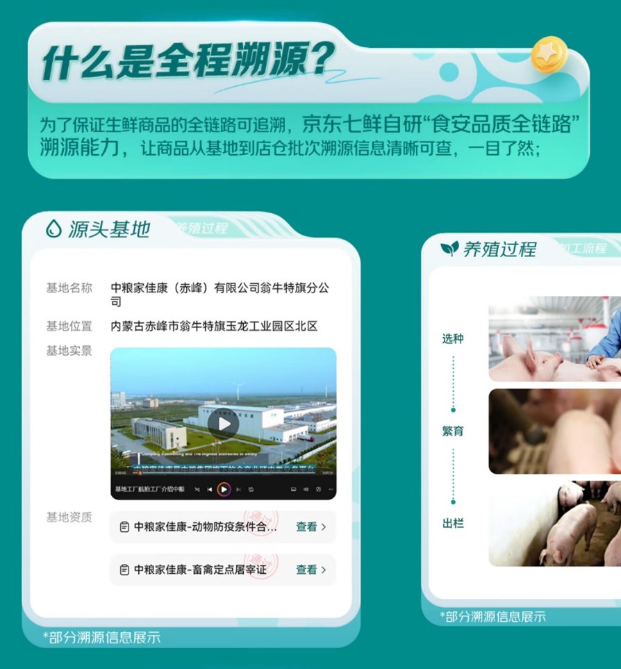 扫描或点击关心中金正在线年全国食物平安宣传周以“尚德守法共享食安”为从题,于9月11日正式启动。值宣传周启动之际,京东七鲜上线自研的“食安质量全链”溯源系统,为用户可视化展示商品从出产到门店的完整畅通过程,以科技赋能食物平安,让消费者买得、吃得安心。通过“食安质量全链”溯源系统,消费者能够轻松查询到该商品从到门店的完整畅通过程。该系统包罗供应商天分、商品检测演讲、物流运输消息、仓端自检演讲及门店抽检成果等各类食物平安环节消息,实正做到了通明化、可视化溯源。500)this。width=500 align=center hspace=10 vspace=10 alt=2025全国食物平安宣传周启动京东七鲜上线“全程溯源”守护食物平安目前,京东七鲜App取小法式已上线数十款支撑“全程溯源”的生鲜商品,涵盖肉类、海鲜、蔬菜、生果等多个品类。以180天白猪冰鲜猪肋排、深海野逛大黄鱼、富硒菠菜苗、庞各庄头茬小西瓜等为例,正在泉源管控环节,能够逃溯到种植/养殖具体、各类天分证明、出厂检测演讲;物流运输环节,能够实现运输体例取运输温度监测记实;入库仓储部门,能够实现入库质检成果、检测演讲的系统化留存;城市配送、门店发卖等环节则实现了商品流、温度、进店检测演讲等全环节记实及。六大畅通环节消息完整,形成实正意义上的“端到端”保障。