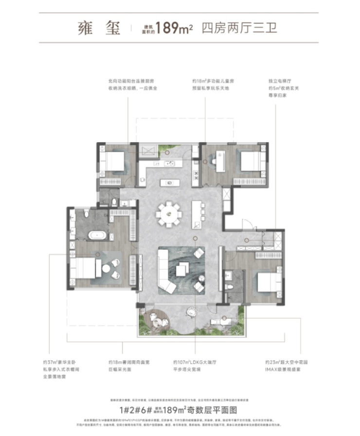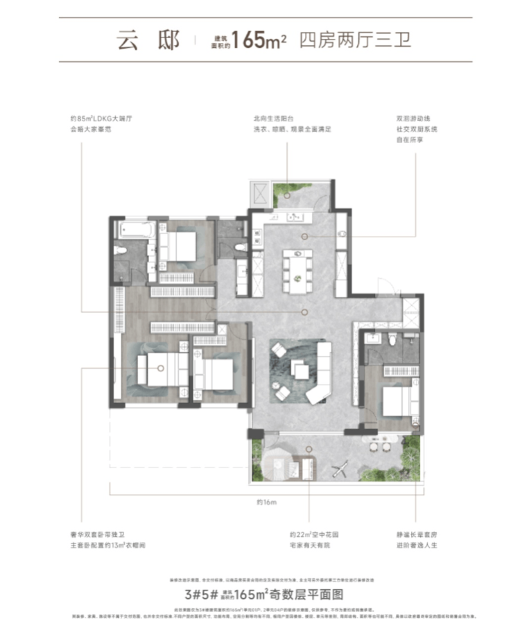 高端户型方面,为四室两厅三卫及以上户型,面积正在一百四十平米以上。户型设想奢华大气,空间结构合理,尽显质量糊口格调。入户花圃设想,让居者正在进门霎时就能感遭到天然的气味;超大客堂取餐厅相连,构成宽阔的公共勾当空间,适合举办大型家庭取商务宴请;四个卧室均为套房设想,配备卫生间取衣帽间,了每一位家庭的栖身私密性取舒服度;此外,户型还规划了的书房、茶馆、影音室等功能空间,满脚居者对高质量糊口的逃求,让糊口愈加丰硕多彩。